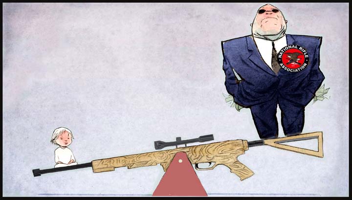 If you start with the blood of Newtown, or Iraq it will lead right to a sparkling, richly appointed, deeply carpeted office in Washington or Wall Street. Find that guy. Draw him. Show Wayne LaPierre, Dick Cheney. Make them as clearly what they are as you can. They will remain powerful, let's face it, no matter what you do. But the fact that you do this, satirize and point the finger at the unindicted criminal, the more you are fulfilling your function. The attempt by journalism to tell truth on fools and the greedy in power is a sacred responsibility. And you cannot measure how many heads turn and opinions change because of voices in the media. But change we do. It is a great joy to be part of that.