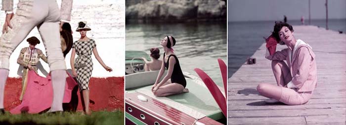 Majorque, 1958; Barbara and Marie Helene, pour Elle, Cap d’Antibes, Eden Roc, 1957; Barbara Mullen on the Boardwalk, Saint Tropez, 1957. Photographs by Georges Dambier, courtesy Bonni Benrubi