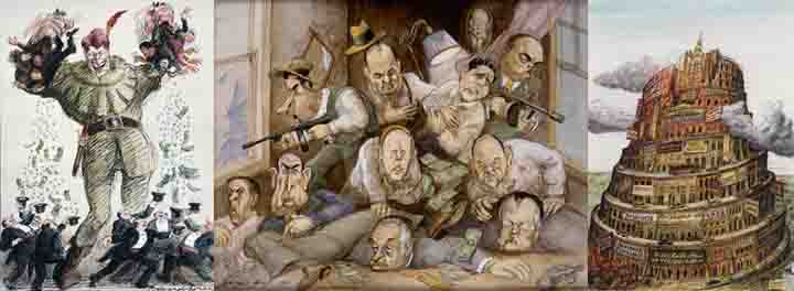 Washington Shootout, illustration for the Republic, 1972; Tower of Babel, illustration