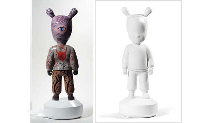 his hometown, arrives in New York next week to introduce The Guest, a porcelain figure styled in the inimitable Baseman way. This project is a collaboration with Lladró Atelier, the contemporary branch of the distinguished Spanish porcelain brand, in celebration of the company’s