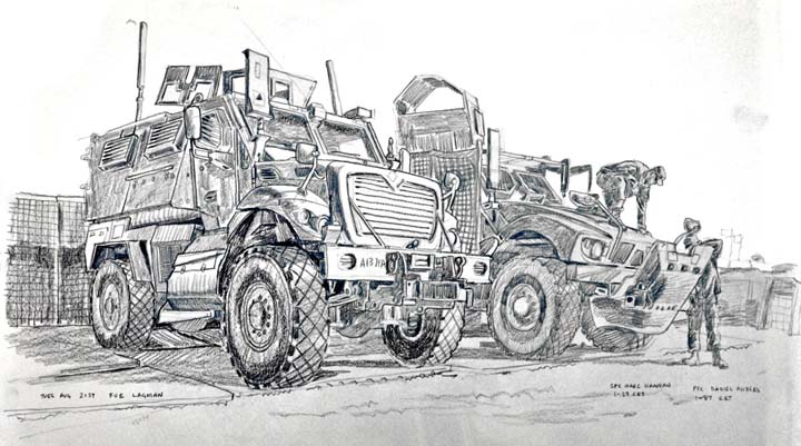 Hannah looking busy on a MAXXPRO on FOB Lagman, Zabul Province, Afghanistan. Although Americans are reportedly losing interest in the war in Afghanistan, more than 80,000 U.S.